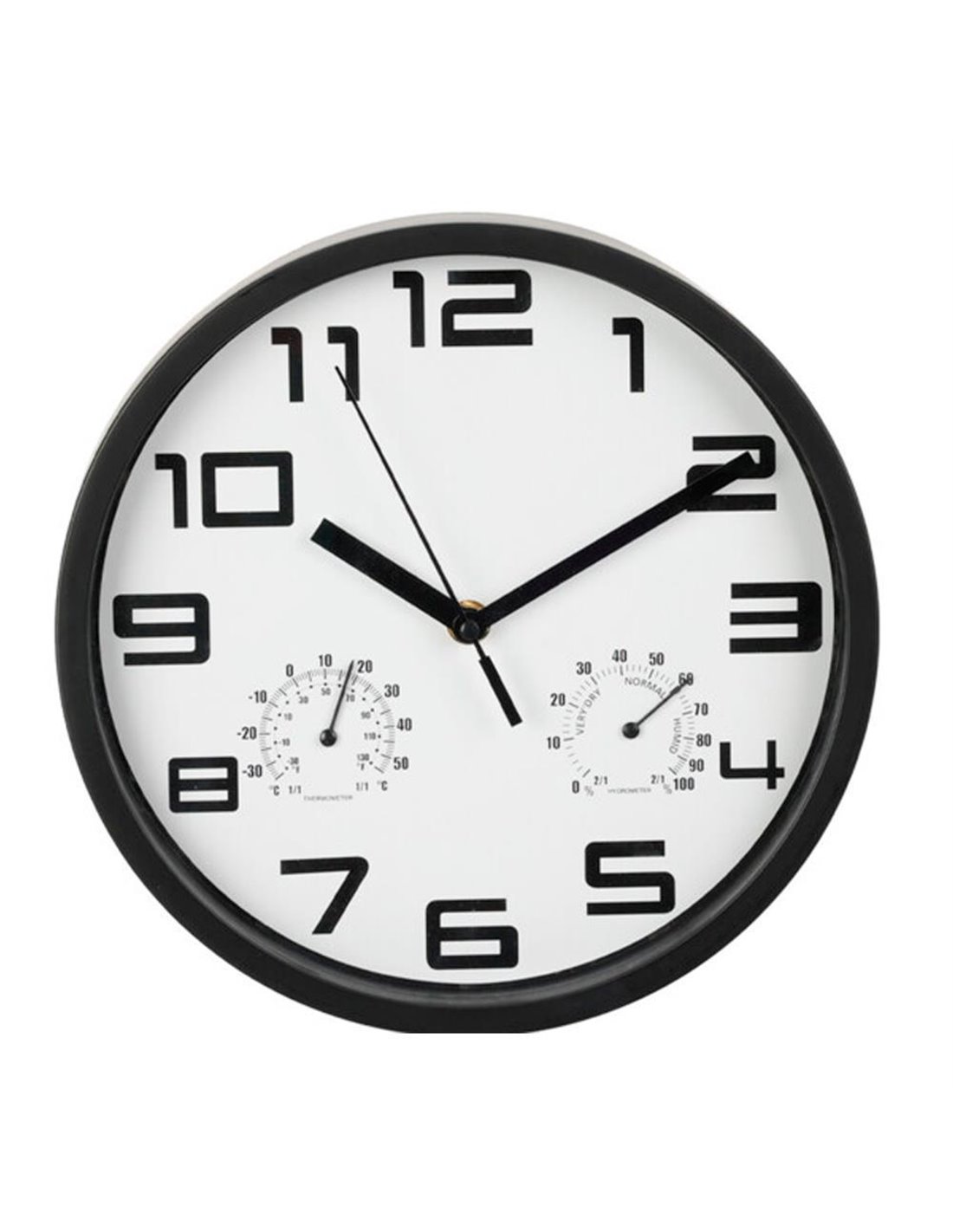 Ρολόι τοίχου με θερμόμετρο και υγρόμετρο.