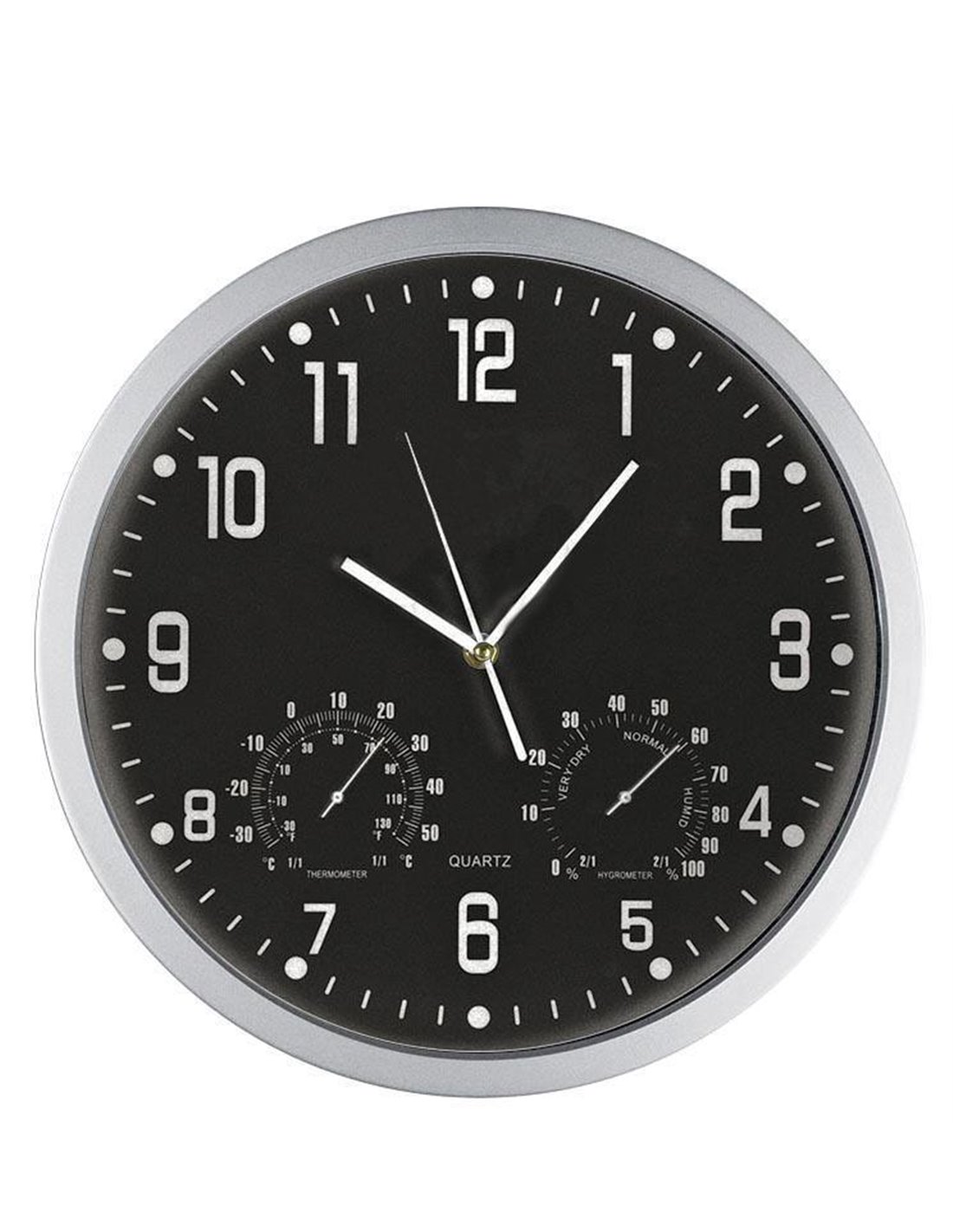 Ρολόι τοίχου θερμόμετρο-υγρόμετρο μαύρο καντράν Ø35εκ.