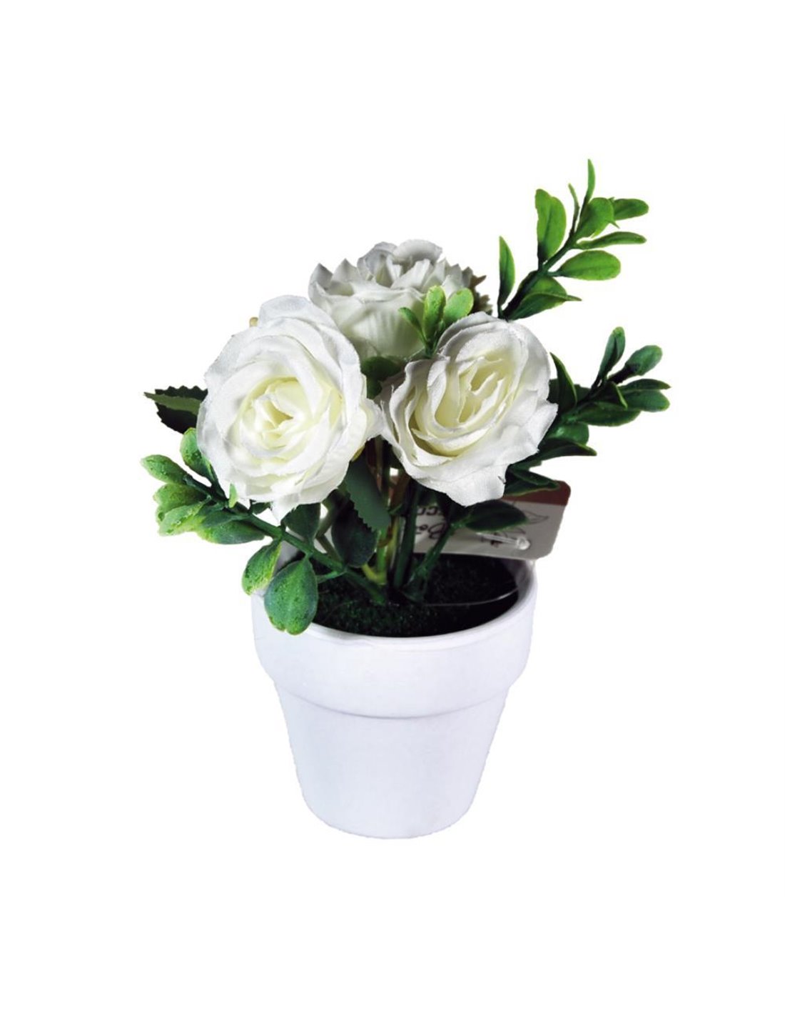 Τριανταφυλλιά λευκή τεχνητή Υ14x7x7εκ. σε λευκή γλάστρα