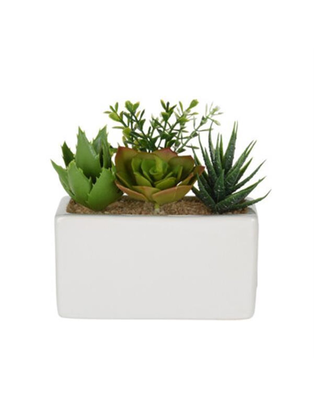 Τεχνητό παχύφυτο III σε ορθογώνια κεραμική γλάστρα Υ14x15x8εκ.