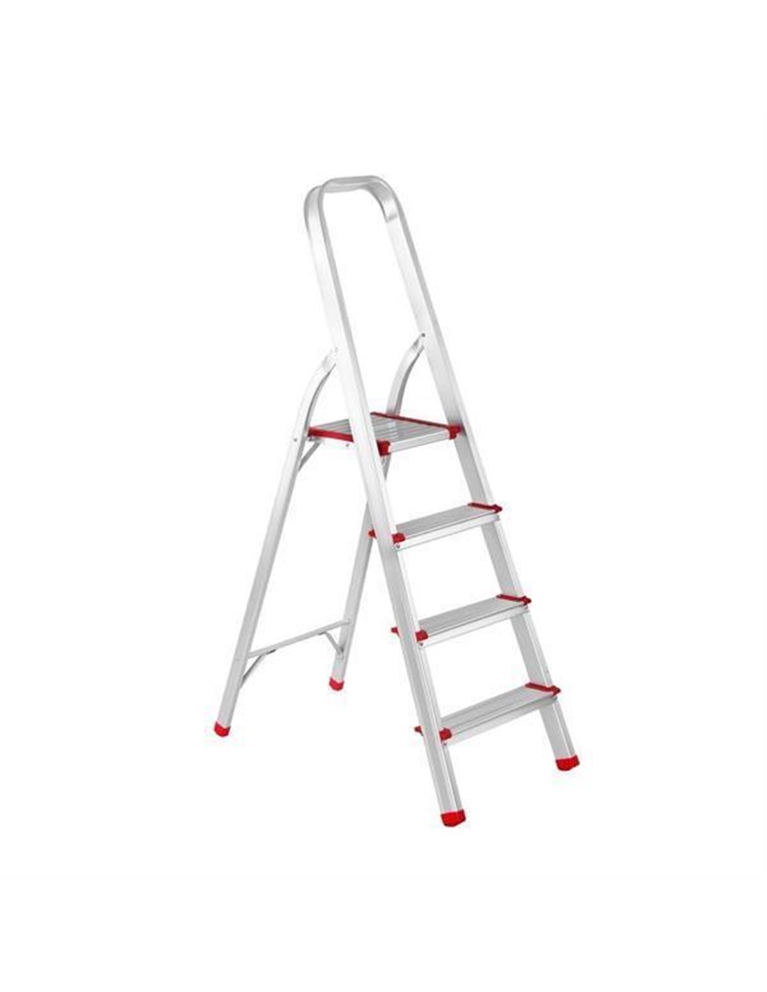 Σκάλα βαρέως τύπου με 4 σκαλοπάτια. Από ανθεκτικό αλουμίνιο. Πιστοποιημένη αντοχή βάρους: 110kg. Ύψος: 140εκ. Χρώμα: ασημί.