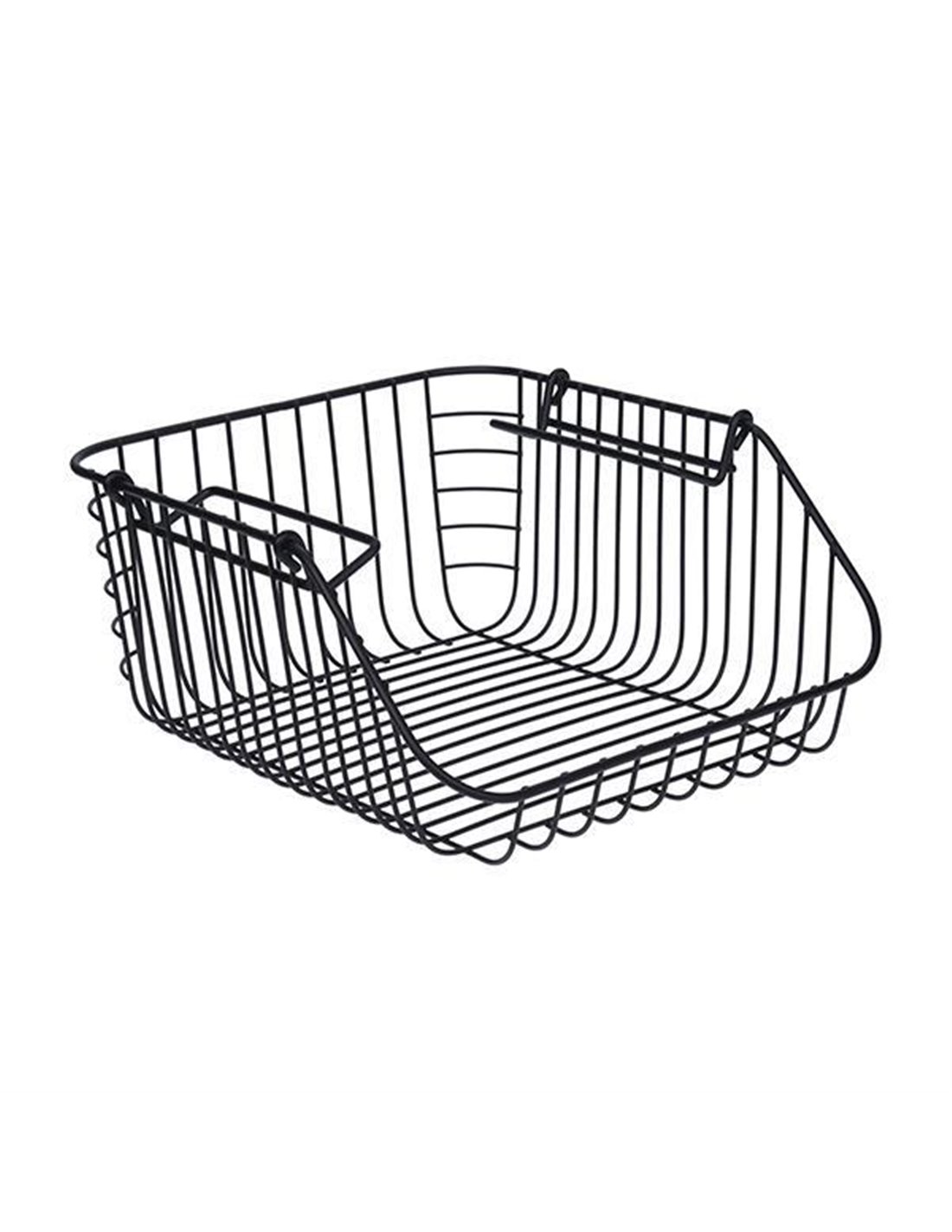 Μεταλλικό συρμάτινο καλάθι, ηλεκτροστατικά βαμμένο σε μαύρο χρώμα. Αποτελεί ένα πρακτικό αξεσουάρ για την οργάνωση του σπιτιού σας. Χρησιμοποιείται για την αποθήκευση μικρών αντικειμένων σε ράφια ή σε ντουλάπια, διατηρώντας τα πάντα οργανωμένα και εξοικονομώντας χώρο.