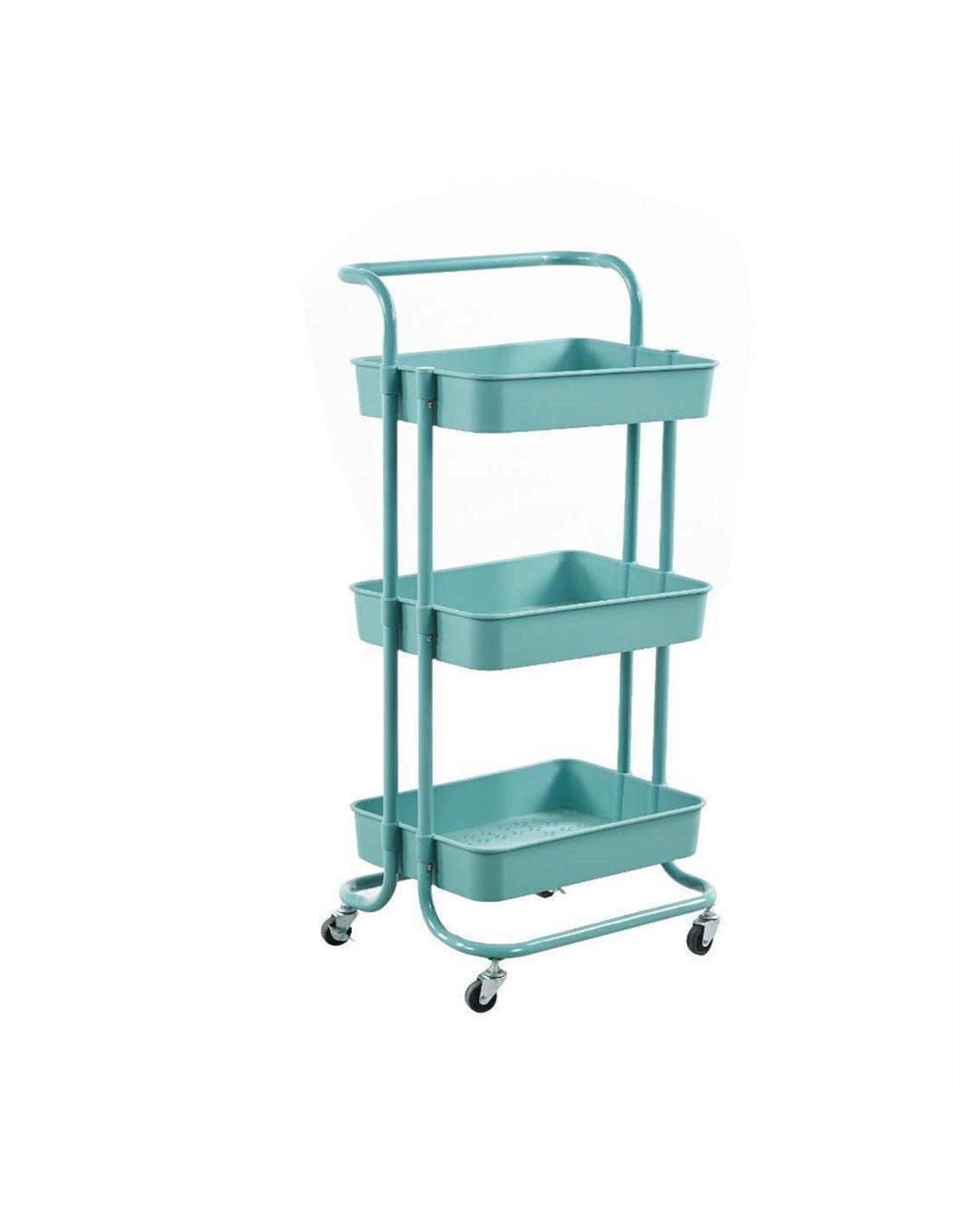 Εύχρηστο τροχήλατο καλάθι τριών θέσεων, το οποίο μπορεί να χρησιμοποιηθεί για την αποθήκευση όλων των ειδών αναλωσίμων, όπως σαν καροτσάκι σερβιρίσματος, καλάθι τροφίμων, καλάθι εργαλείων. Ιδανικό για να αποθηκεύετε απορρυπαντικά ή επιπλέον πετσέτες στο μπάνιο, τρόφιμα και μπαχαρικά στην κουζίνα, βιβλία ή άλλα αναλώσιμα στο γραφείο Ένα καλάθι χίλιες χρήσεις! Χρώμα: Μπλε βεραμάν Διαστάσεις: Υ87x45x37εκ. Διαστάσεις κιβωτίου: Υ43x29x31εκ. Βάρος κιβωτίου: 5,4Kg.