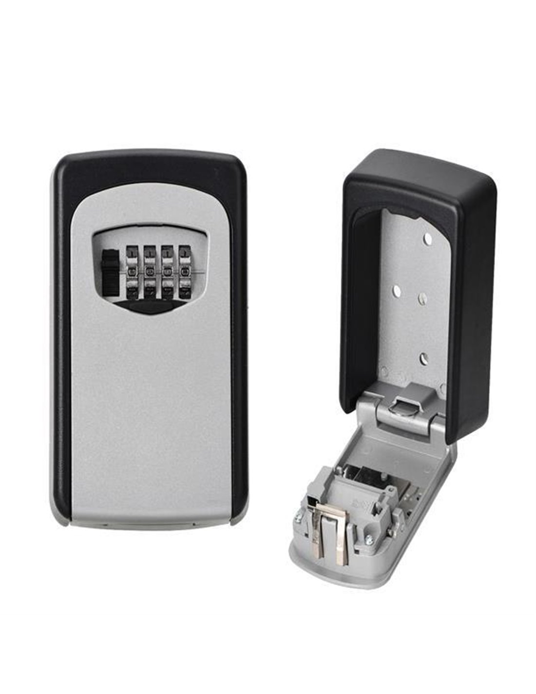 Κουτί φύλαξης κλειδιών μεγάλο, με συνδυασμό 4 ψηφίων. Διευκολύνει την ασφαλή φύλαξη των κλειδιών και την πρόσβαση σε αυτά, μόνο σε άτομα που γνωρίζουν τον κωδικό. Ιδανικό για εξοχικό, ενοικιαζόμενα δωμάτια και Airbnb. Μπορεί να κρεμαστεί σε τοίχους και πόρτες. Κλειδώνει με συνδυασμό 4 ψηφίων. Ανθεκτικό στις καιρικές συνθήκες. Περιλαμβάνονται οι βίδες στερέωσης. Χρώμα: μαύρο,γκρι Διαστάσεις εσωτερικές: Υ4x7,5x10εκ. Διαστάσεις : Υ15x12x5εκ.