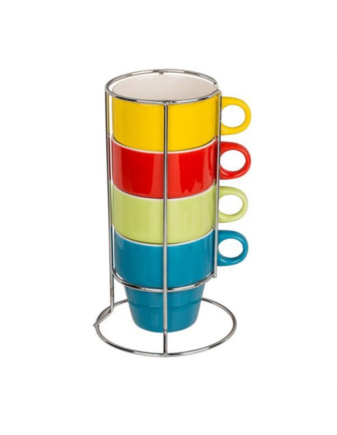 Σετ κούπες 4 τεμαχίων για καφέ από πορσελάνη. Στηρίζονται σε σταντ χρωμίου, και πιάνουν ελάχιστο χώρο στον πάγκο. Διαστάσεις σταντ: 12x12x21,5εκ.