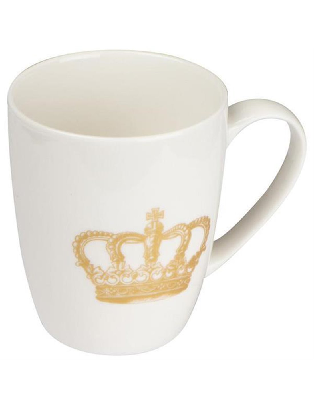 Κούπα από πορσελάνη με ανάγλυφη χρυσή "κορώνα". Μέγιστη χωρητικότητα 300ml. Πολύ μοντέρνα. Διαστάσεις: Ø8,5x10.3εκ. ύψος.
