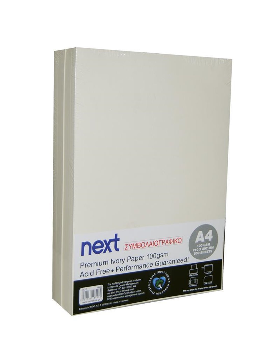 Next Gold Ivory συμβολαιογραφικό χαρτί Α4 100γρ. Κορυφαίας ποιότητας. Acid free. Κάθε δεσμίδα περιέχει 500φυλ.