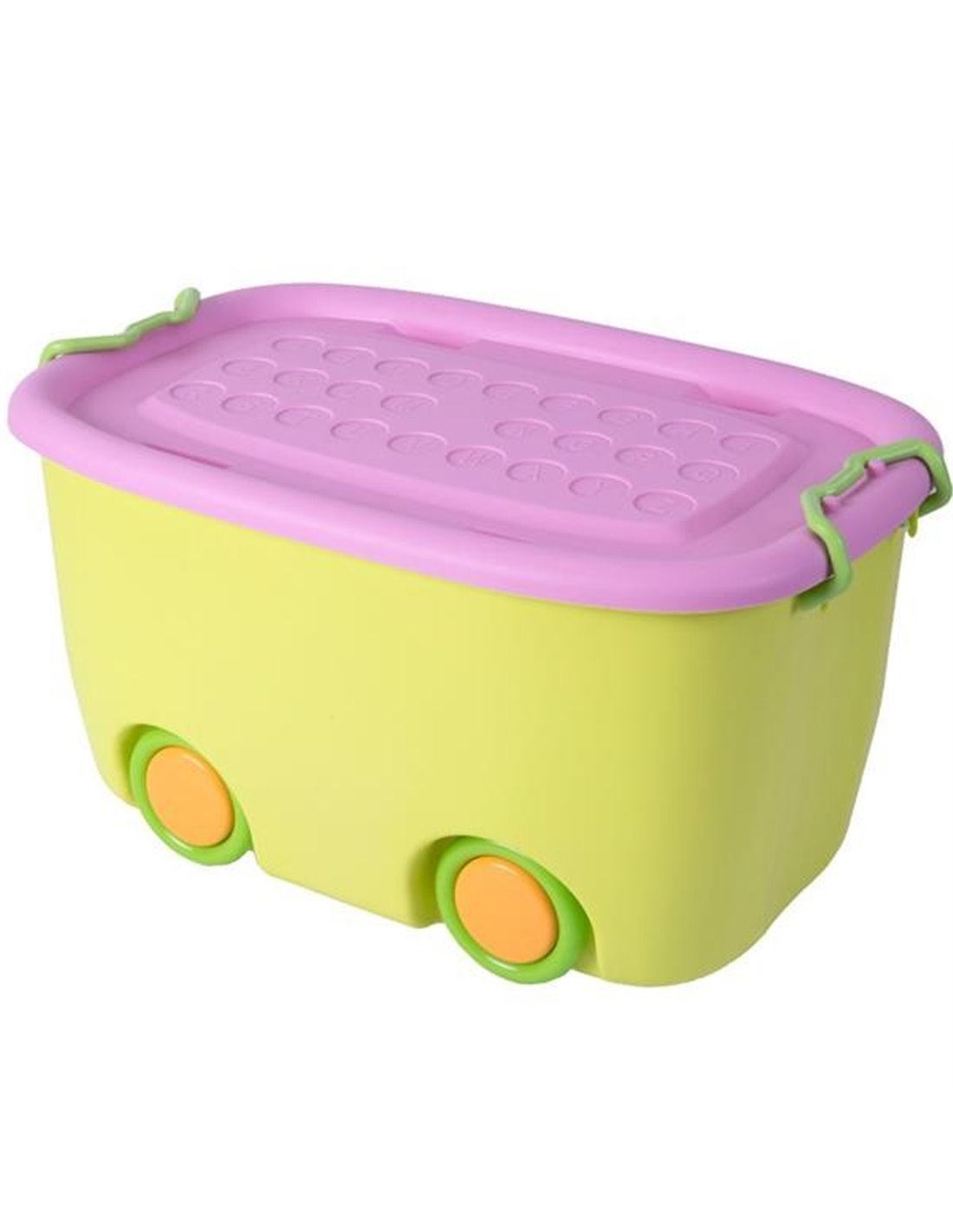 Κουτί αποθήκευσης πράσινο παστέλ και κοραλί καπάκι με 4 ρόδες.