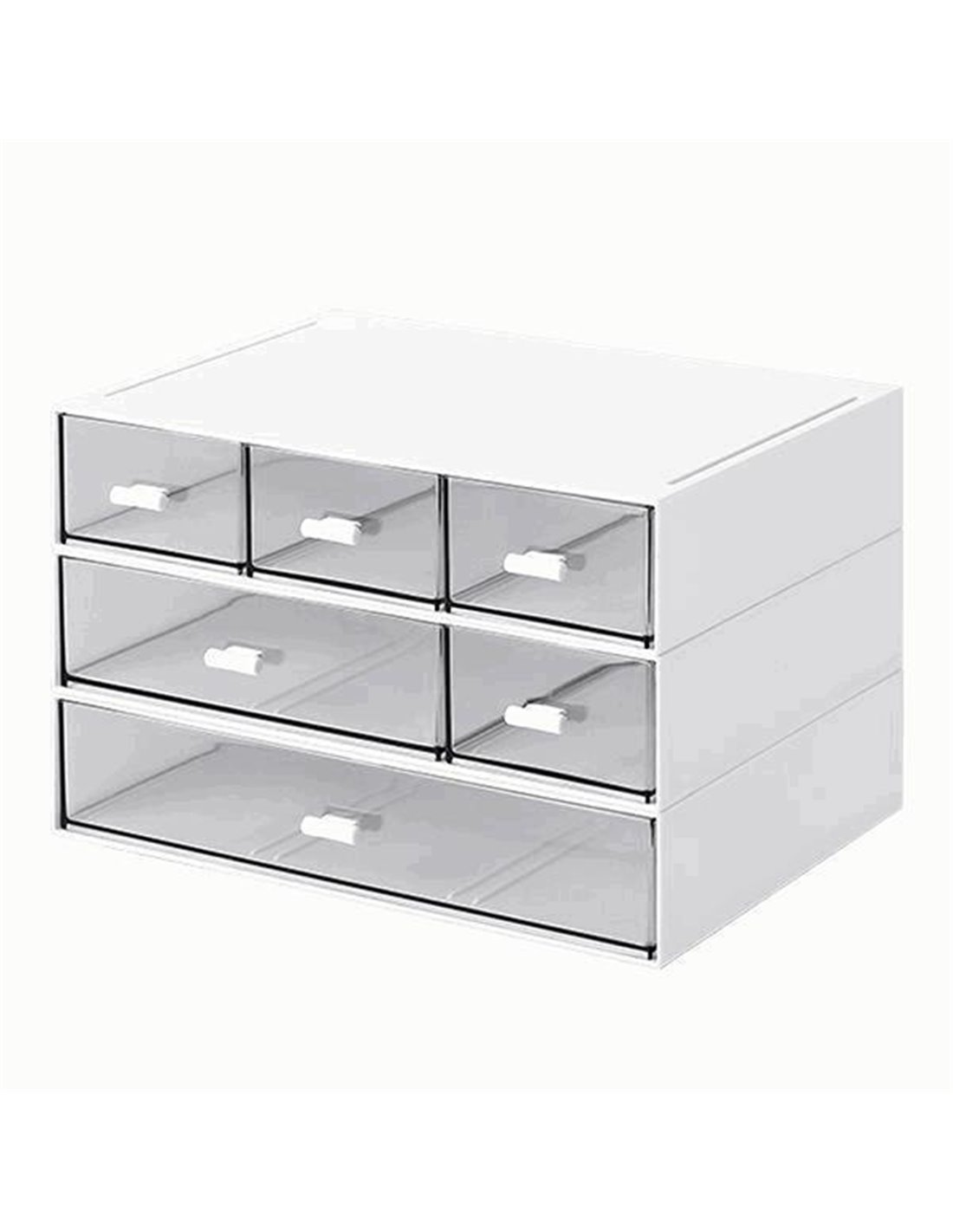 Organizer για καλλυντικά ή μολυβοθήκη με 6 συρτάρια, από υψηλής ποιότητας πλαστικό. Οργανώνει και βάζει τάξη στο γραφείο, στα καλλυντικά και στο μπάνιο. Χρώμα: Λευκό. Διαστάσεις: Y15x22,9x16,7εκ.