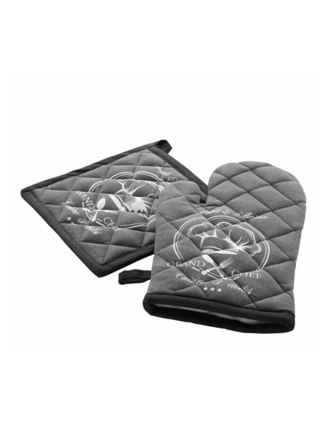 Σετ πιάστρα-γάντι φούρνου "Grand chef" ανοιχτό γκρι 100% βαμβάκι