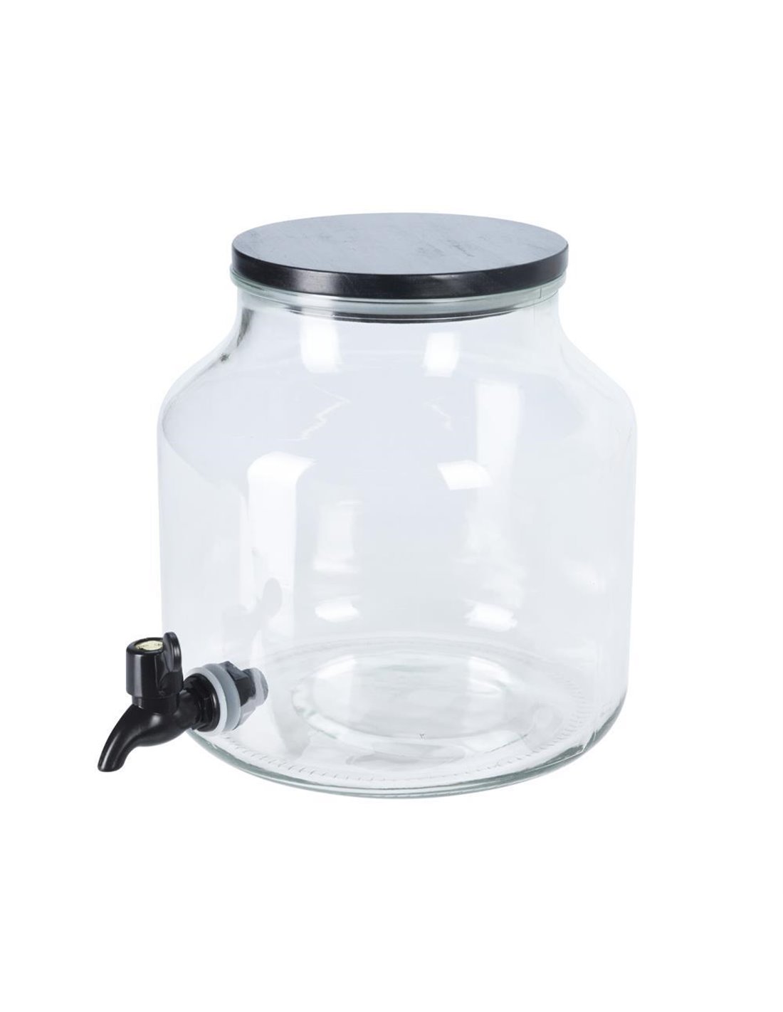 Γυάλινος οβάλ διανομέας ποτών 5.2L, με μαύρο καπάκι από ξύλο πεύκου και μαύρη βρύση. Πάχος καπακιού 2εκ. Διαστάσεις: 20,5χ20,5χΥ21,5εκ.