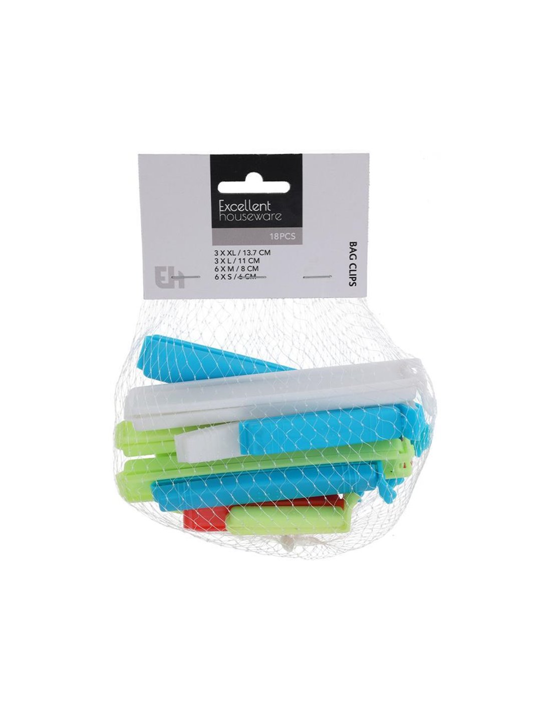 Κλιπ πλαστικά αεροστεγούς κλεισίματος. Το σετ περιλαμβάνει 3 τεμάχια xxlarge 13,7εκ., 3 τεμάχια large 11εκ., 6 τεμάχια medium 8εκ., και 6 τεμάχια small 6εκ.