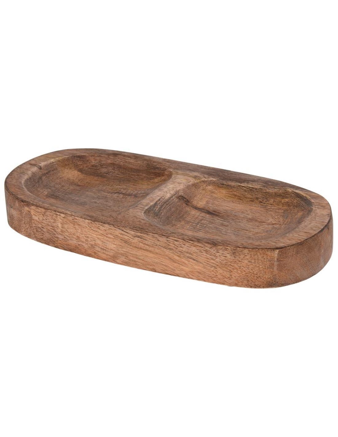 Μπωλ δύο θέσεων. Από ξύλο μάνγκο. Διαστάσεις: Υ2.5x20x10εκ.