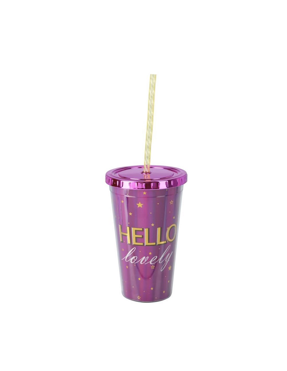 Αυτό το ποτήρι διαστάσεων Υ16xØ10 εκ., είναι κατασκευασμένο από PS. Το ποτήρι διαθέτει διπλό τοίχωμα για επιπλέον μόνωση και προσφέρεται σε δύο σχέδια με μωβ θέμα πάρτι. Περιλαμβάνει καλαμάκι από διαφανές PP, μήκους 26,5 εκ.