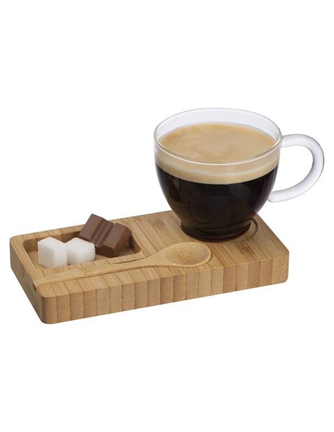Δίσκος σερβιρίσματος από μπαμπού, με ένα γυάλινο φλιτζάνι