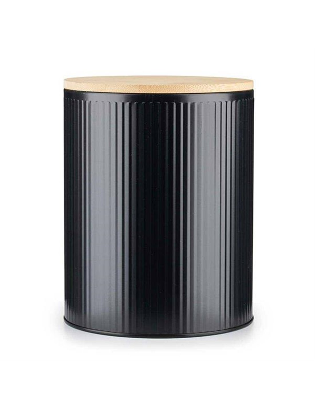 Κουτί μεταλλικό μαύρο, χωρητικότητας 1700ml. με καπάκι από μπαμπού. Μια πρακτική αλλά και διακοσμητική προσθήκη για την κουζίνα σας.