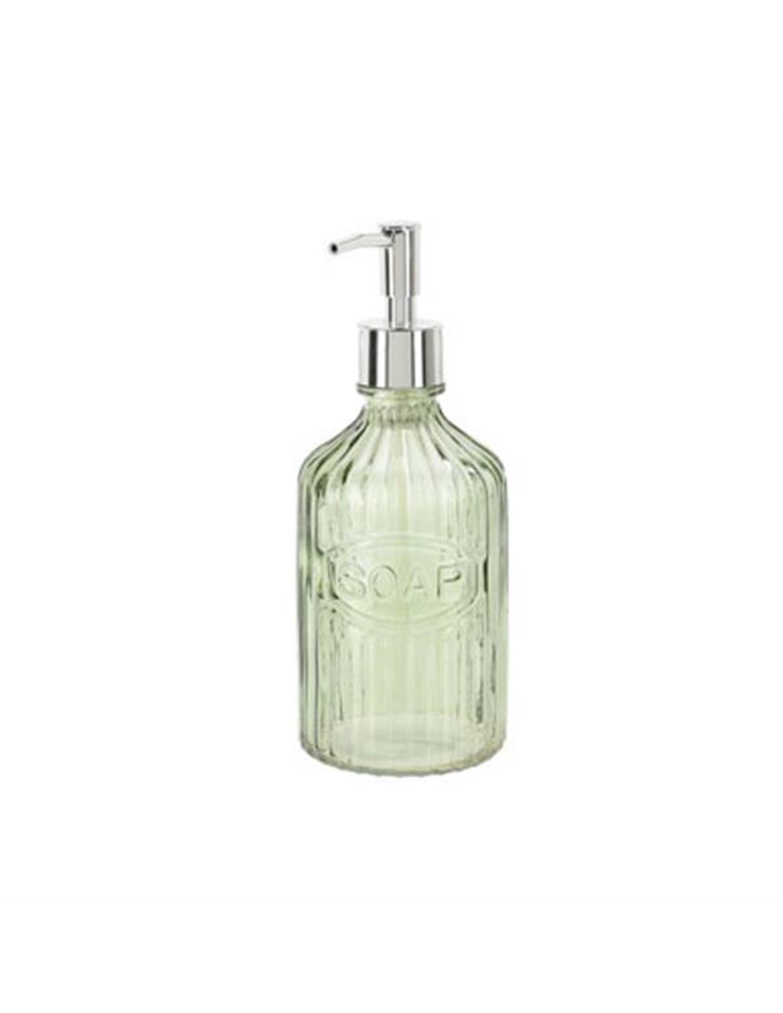 Dispenser υγρού σαπουνιού 450ml με γυάλινο δοχείο και αντλία από χρώμιο. Μέγεθος: Ø8,3xΥ21εκ.