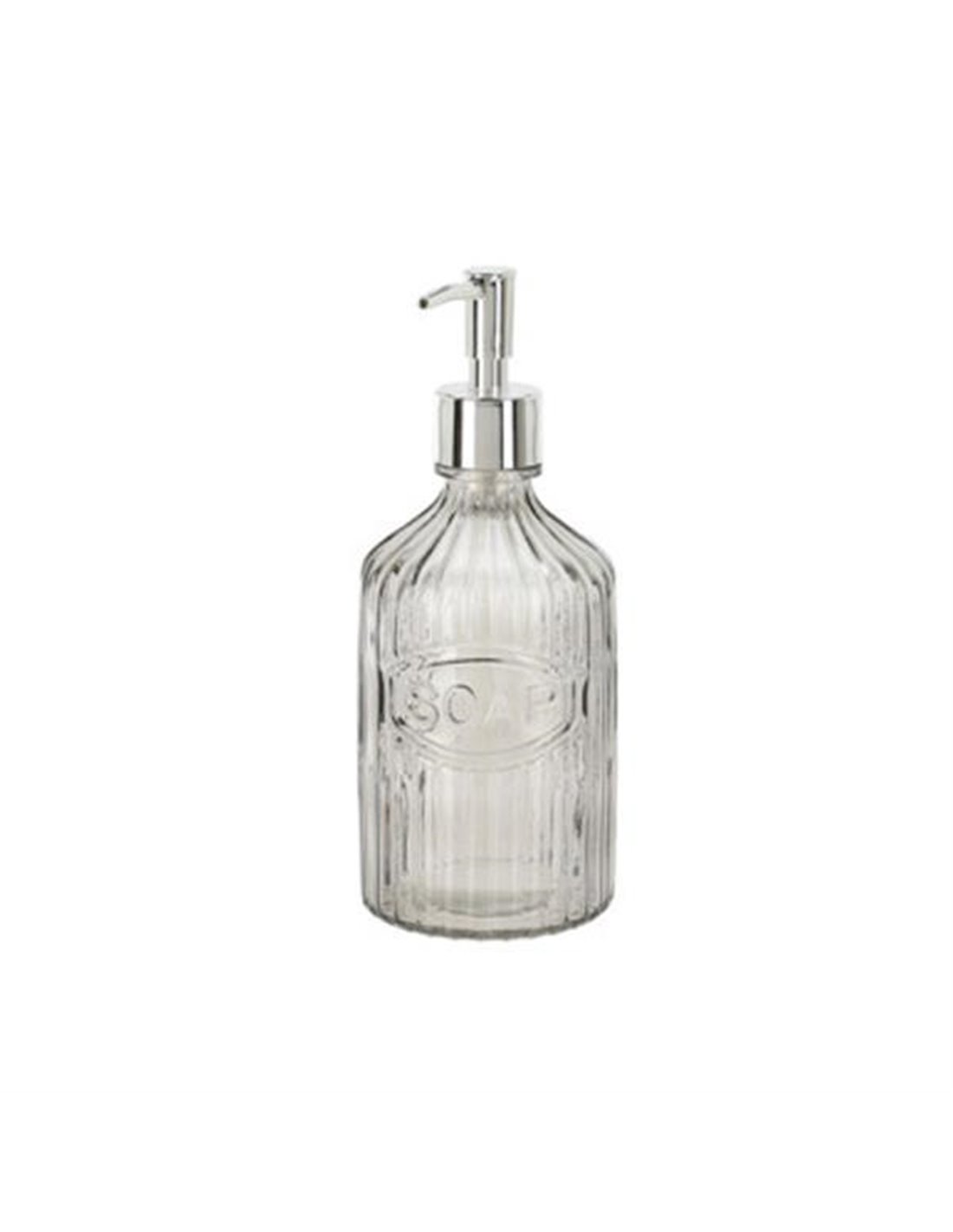 Dispenser υγρού σαπουνιού 450ml με γυάλινο δοχείο και αντλία από χρώμιο. Μέγεθος: Ø8,3xΥ21εκ.