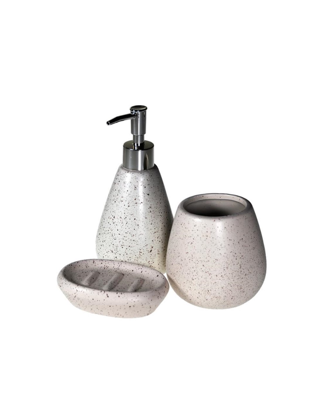 Το σετ περιλαμβάνει ένα dispenser υγρού σαπουνιού, μια θήκη για οδοντόβουρτσες