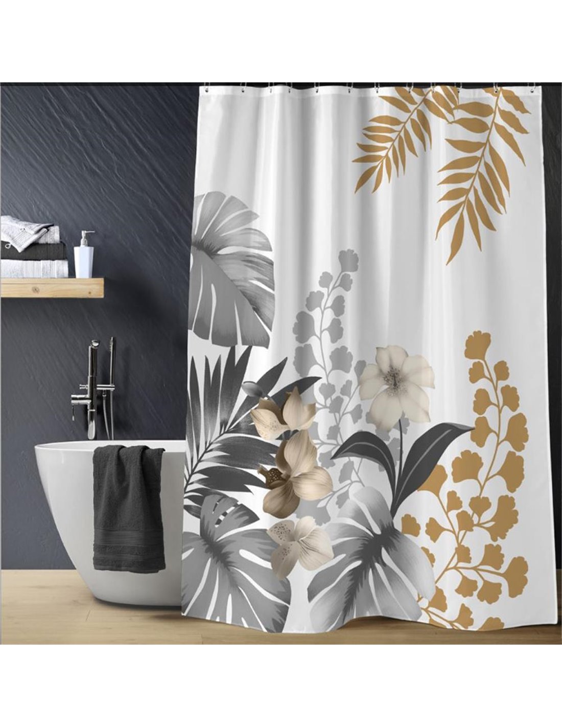 Κουρτίνα μπάνιου. 100% polyester, 92γρ. με 12 κρίκους. Διαστάσεις: λευκό.