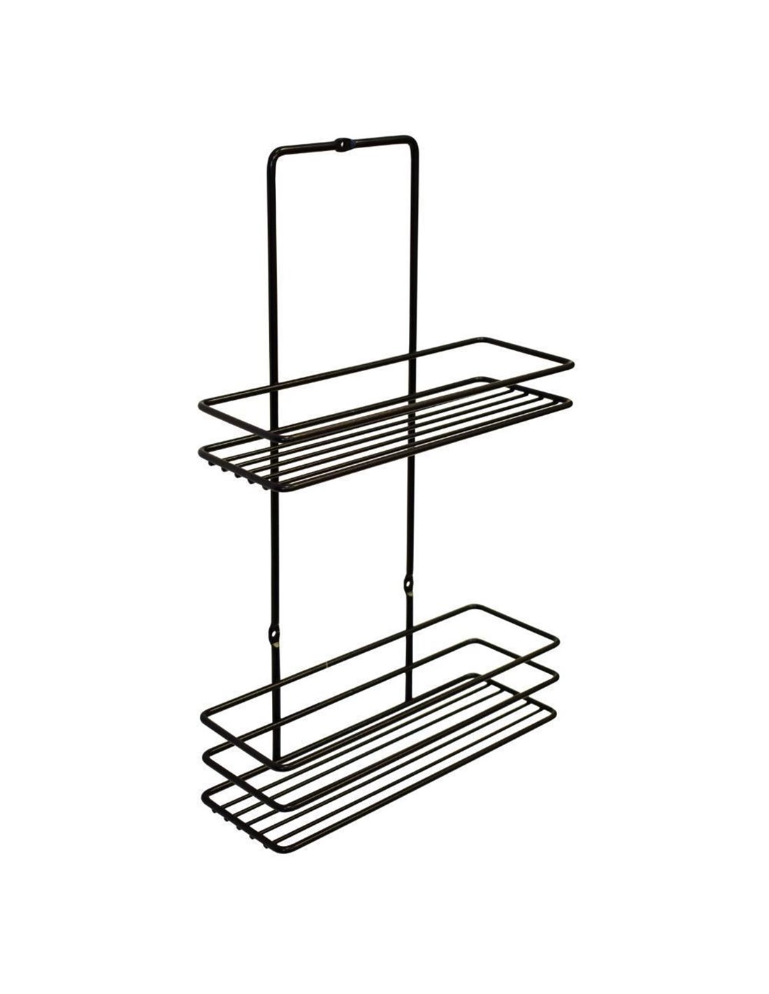 Ραφιέρα μπάνιου με δύο ράφια, βαρέως τύπου, μεταλλική σε μαύρο χρώμα. Διαθέτει θέσεις για να βιδωθεί στον τοίχο. Προστατεύεται με αντιδιαβρωτική επίστρωση. Υλικό: μεταλλική. Διαστάσεις: Υ37x8x23εκ.