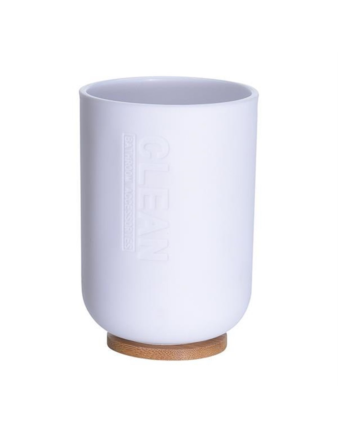 Ποτήρι μπάνιου πλαστικό λευκό με βάση από μπαμπού. Χωρητικότητα 300ml. Μέγεθος: Ø7xΥ11εκ. Βάρος: 0,063Kg.
