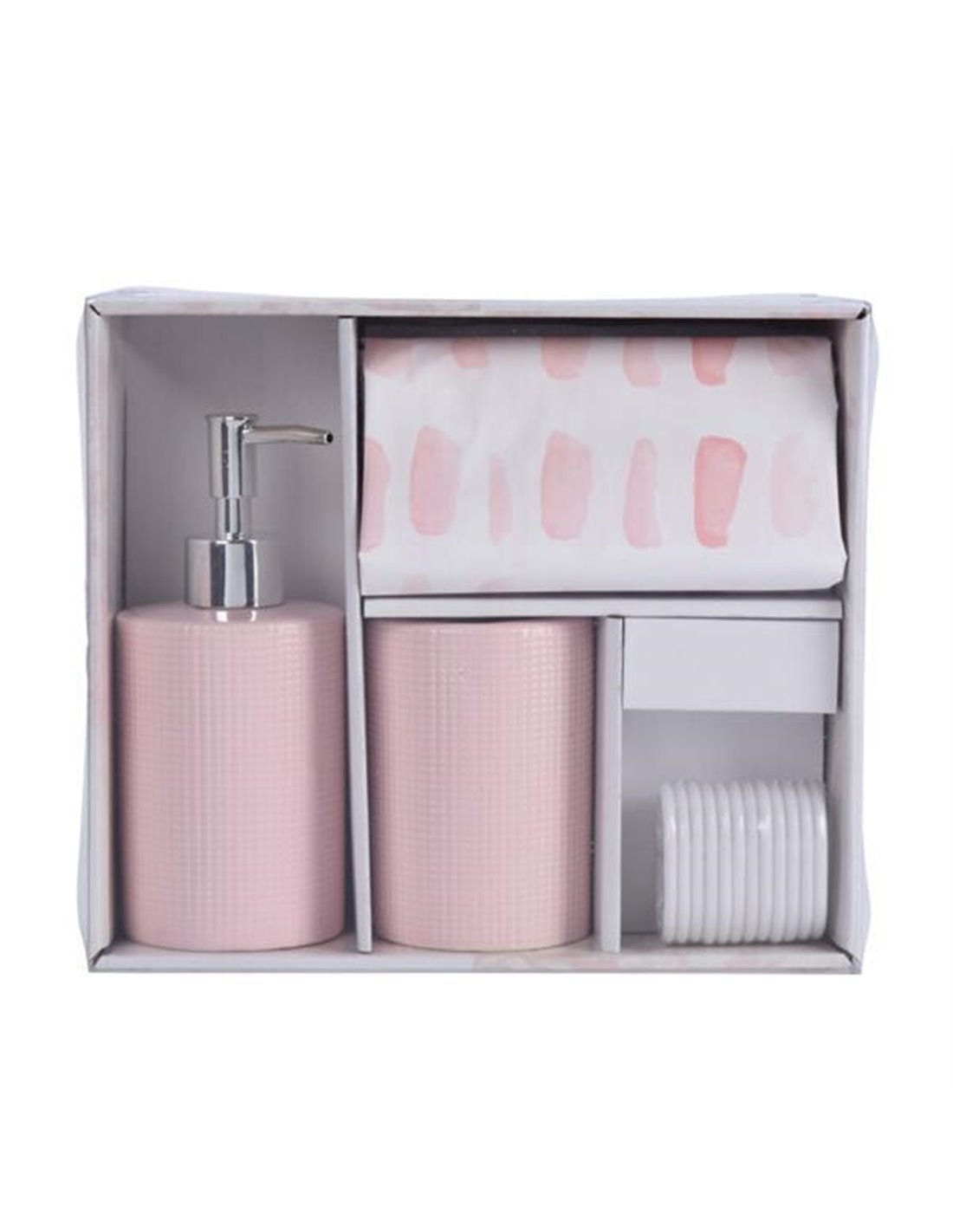 Το σετ περιλαμβάνει ένα dispenser υγρού σαπουνιού, μια θήκη για οδοντόβουρτσες