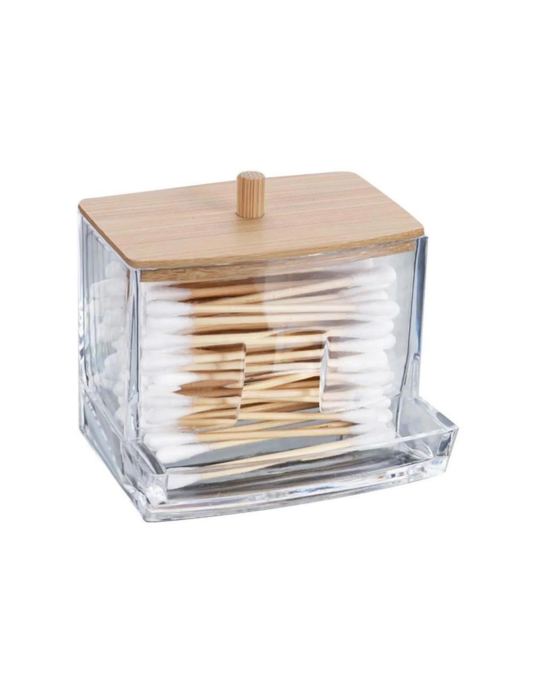 Θήκη για μπατονέτες ακρυλική διάφανη με καπάκι απο bamboo. Διαστάσεις: Y8,8x8,7x7,5. Βάρος: 0,09 Kg.