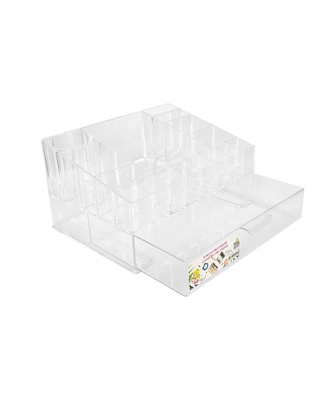 Οργανώστε εύκολα κραγιόν, μάσκαρα, πινέλα και μικρά αξεσουάρ σε μια κομψή, διάφανη βάση με 18 πρακτικές θήκες. Ιδανική για χρήση στο μπάνιο, το γραφείο ή το μπουντουάρ, αλλά και για επαγγελματική χρήση σε studio ή χώρους ομορφιάς.