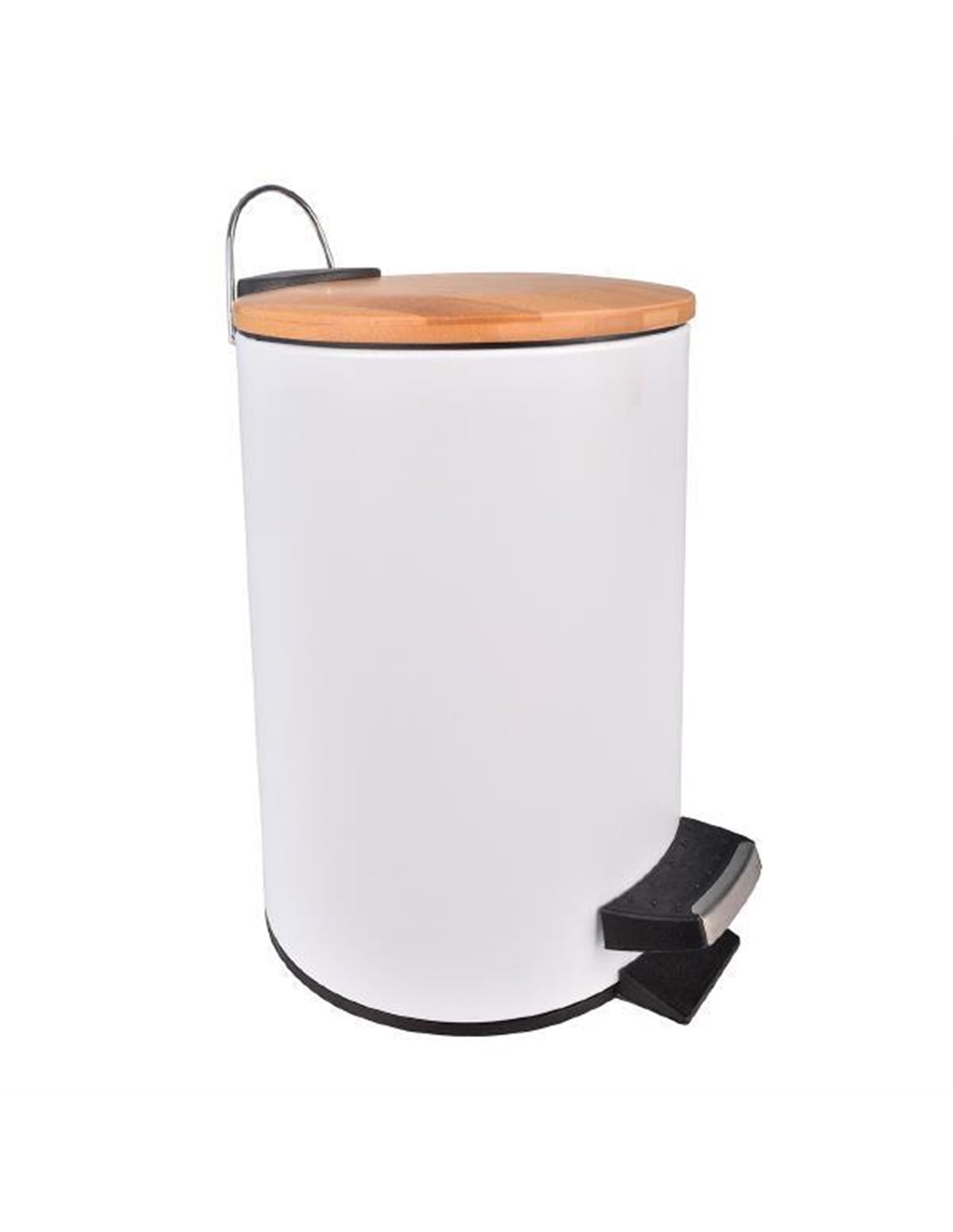 Κάδος απορριμάτων με πεντάλ 5lt λευκό με ξύλινο καπάκι Y25,5cm Ø20cm