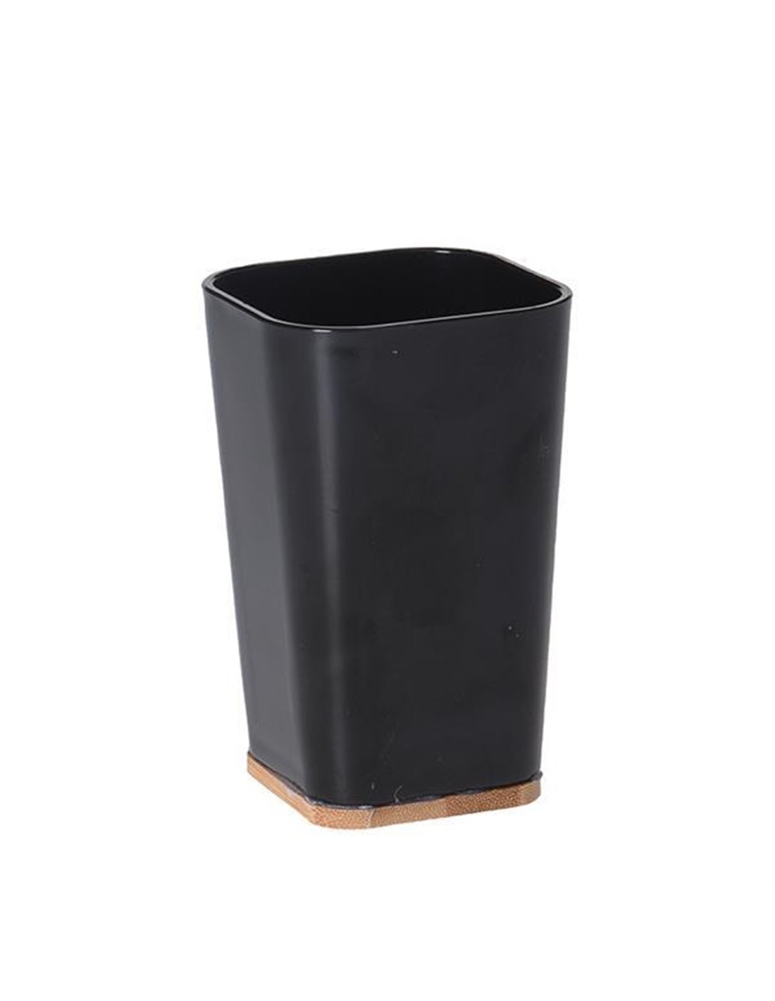 Ποτήρι μπάνιου πλαστικό μαύρο με bamboo βάση 7,3x7,5xΥ11,5εκ.