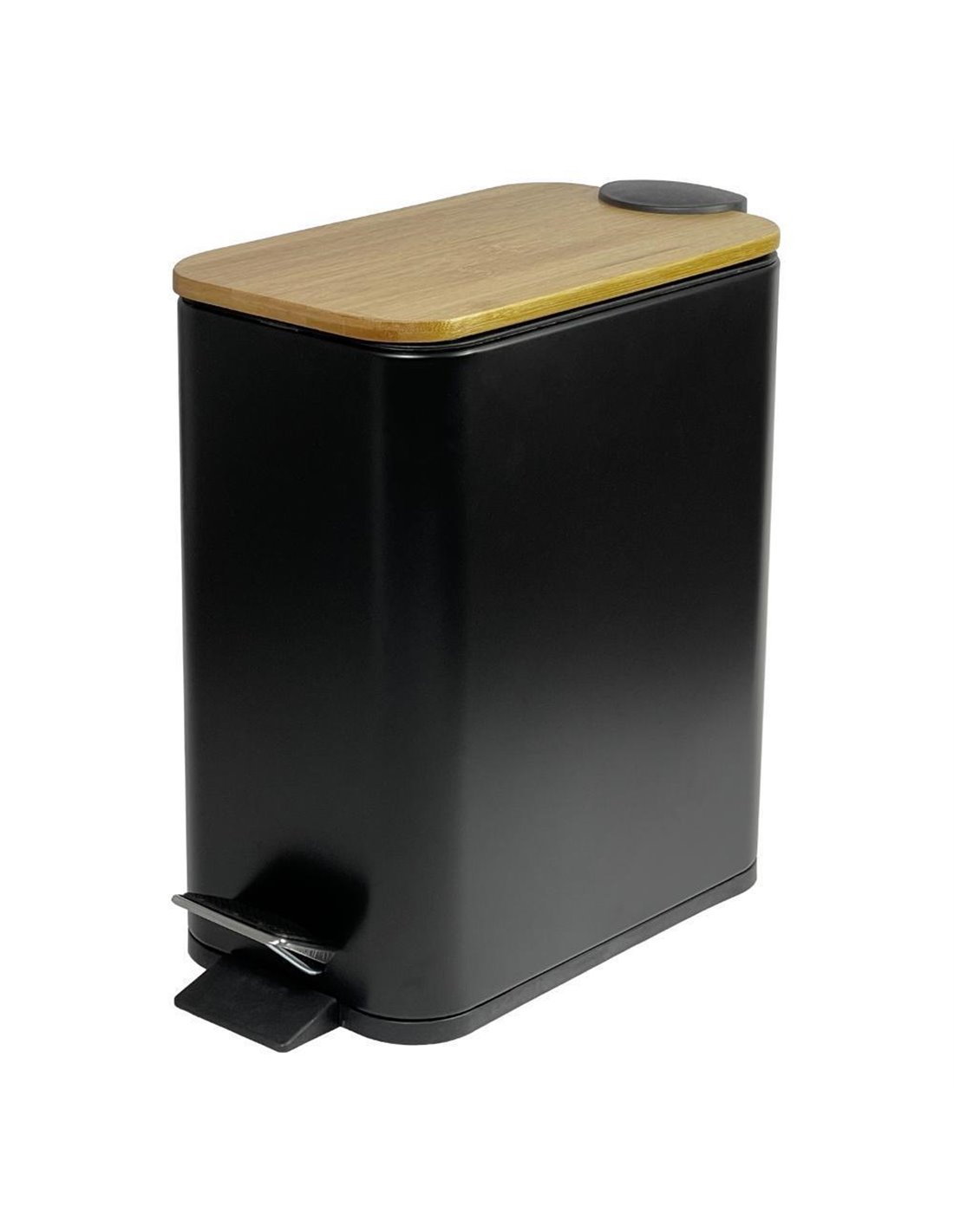 Κάδος απορριμμάτων με απαλό κλείσιμο 6l - ξύλινο καπάκι, μαύρο χρώμα.