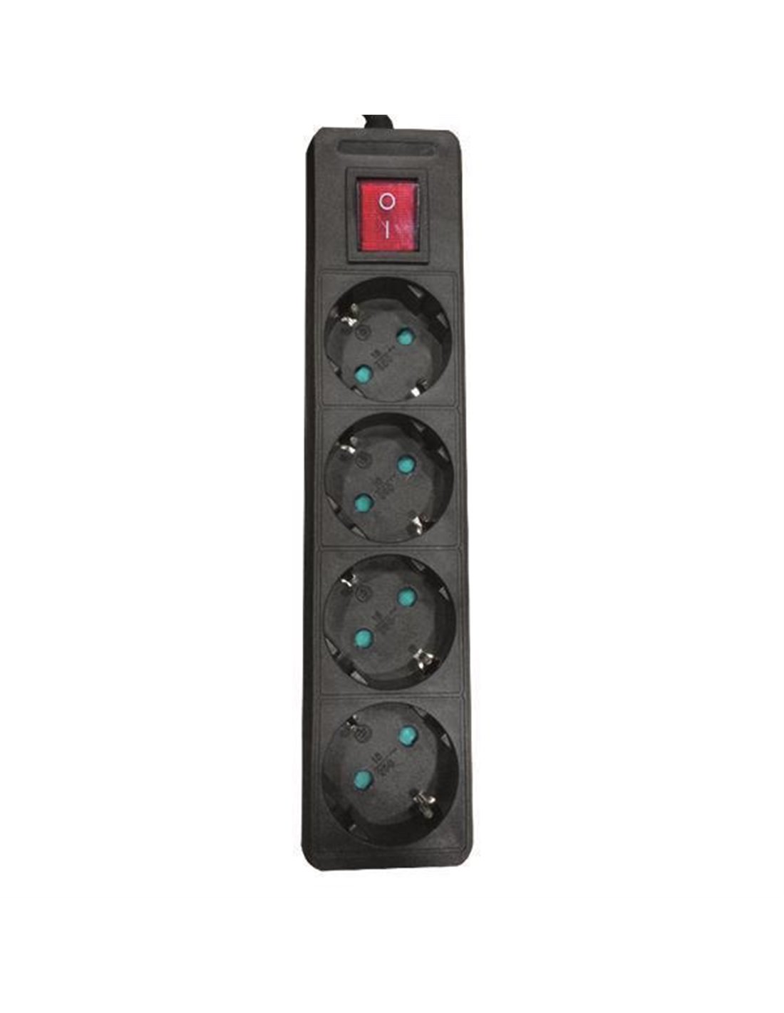 Πολύμπριζο 4θέσεων μαύρο με διακόπτη, 1,5m μήκος και προστασία επαφών