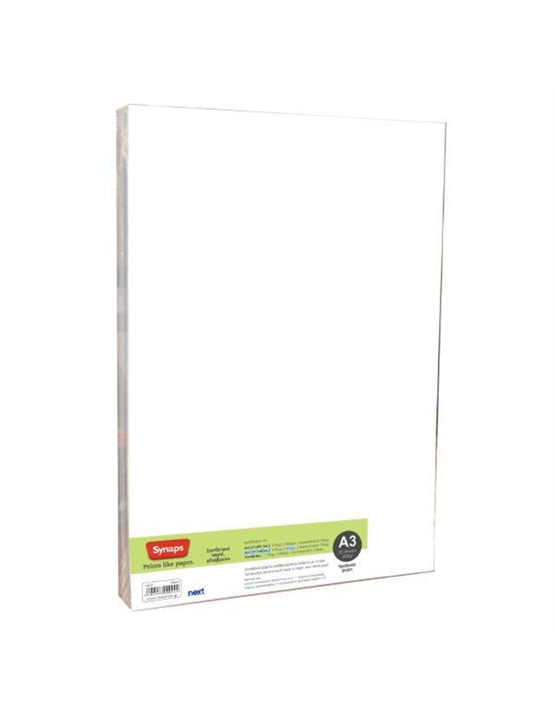 Synaps συνθετικό χαρτί, αδιάβροχο Α3, 300γρ. πακέτο 20 φύλλων.