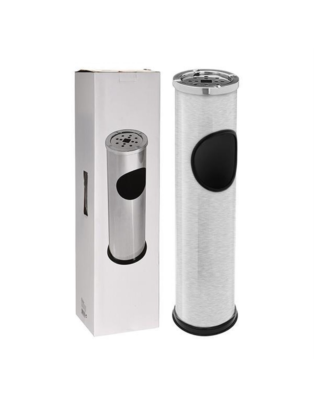 Καλάθι αχρήστων-σταχτοδοχείο, ανοξείδωτο, Ø14,7xY56,6εκ. με βάση από καουτσούκ και καπάκι από ανοξείδωτο ατσάλι. Κατάλληλο για εσωτερικούς και εξωτερικούς κοινόχρηστους χώρους.