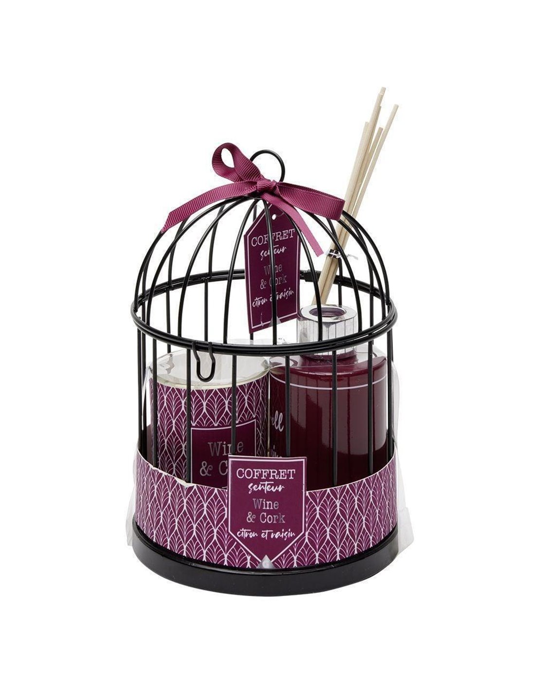 Το διακοσμητικό κλουβάκι με αρωματικό και κερί, είναι ένας όμορφος και λειτουργικός συνδυασμός διακόσμησης και αρωματισμού του χώρου. Περιλαμβάνει ένα γυάλινο αρωματικό diffuser χωρητικότητας 100 ml, που διαχέει το άρωμα μέσω των 6 rattan sticks, καθώς και ένα αρωματικό γυάλινο κερί. Το diffuser με τα rattan sticks είναι ένας διακριτικός τρόπος να αρωματίσετε έναν χώρο, ενώ το κερί προσθέτει τόσο ζεστή φωτεινότητα όσο και επιπλέον άρωμα όταν αναφλέγεται, δημιουργώντας μια χαλαρωτική ατμόσφαιρα. Διαστάσεις: Υ19,5x∅13,5εκ