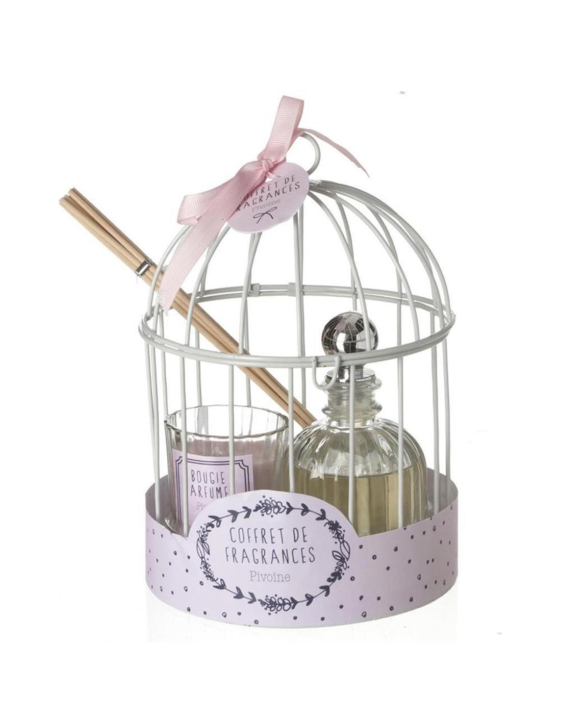 Το διακοσμητικό κλουβάκι με αρωματικό και κερί, είναι ένας όμορφος και λειτουργικός συνδυασμός διακόσμησης και αρωματισμού του χώρου. Περιλαμβάνει ένα γυάλινο αρωματικό diffuser χωρητικότητας 100 ml, που διαχέει το άρωμα μέσω των 6 rattan sticks, καθώς και ένα αρωματικό γυάλινο κερί. Το diffuser με τα rattan sticks είναι ένας διακριτικός τρόπος να αρωματίσετε έναν χώρο, ενώ το κερί προσθέτει τόσο ζεστή φωτεινότητα όσο και επιπλέον άρωμα όταν αναφλέγεται, δημιουργώντας μια χαλαρωτική ατμόσφαιρα. Διαστάσεις: Υ19,5x∅13,5εκ