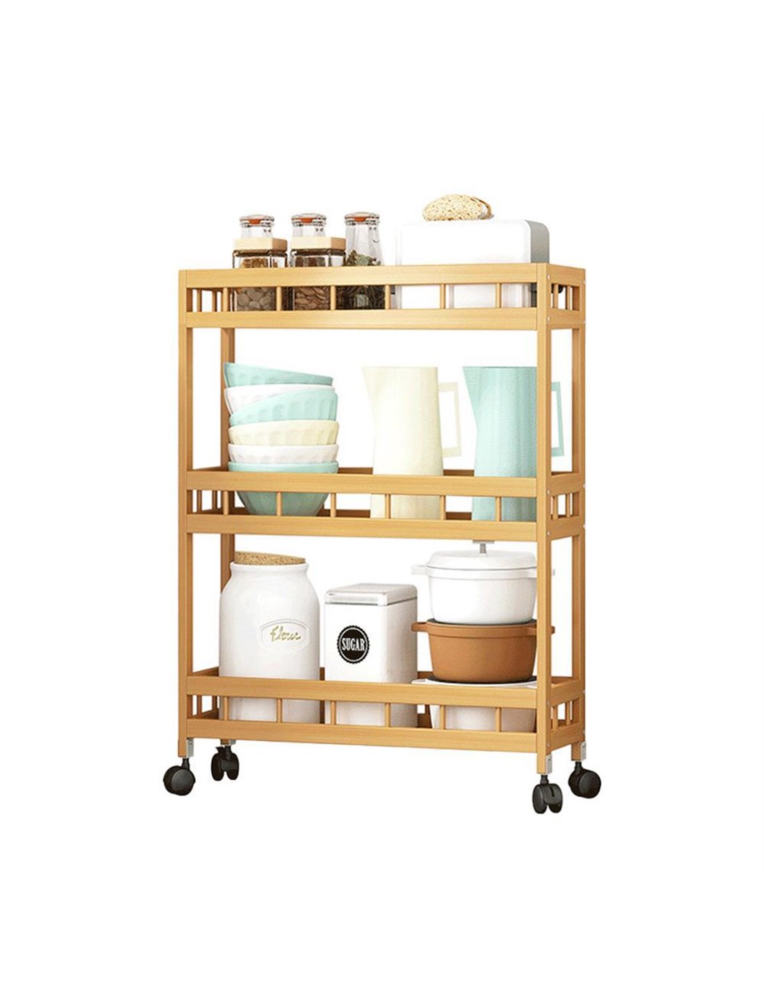 Τρολεϊ κουζίνας ξύλινο Nextdeco με 3 επίπεδα. Μια πρακτική και κομψή λύση για την οργάνωση των ειδών της κουζίνας σας, προσφέροντας αποθηκευτικό χώρο και εύκολη πρόσβαση. Διαθέτει 3 ράφια, ιδανικά για την τοποθέτηση σκευών, συσκευών ή διακοσμητικών αντικειμένων, εξοικονομώντας χώρο και διατηρώντας τα πάντα σε κοντινή απόσταση. Με την ανθεκτική ξύλινη κατασκευή του, το τρολεϊ προσδίδει μια αίσθηση κομψότητας σε κάθε κουζίνα ή τραπεζαρία. Διαστάσεις: Υ71xΜ40xΠ18 εκ.