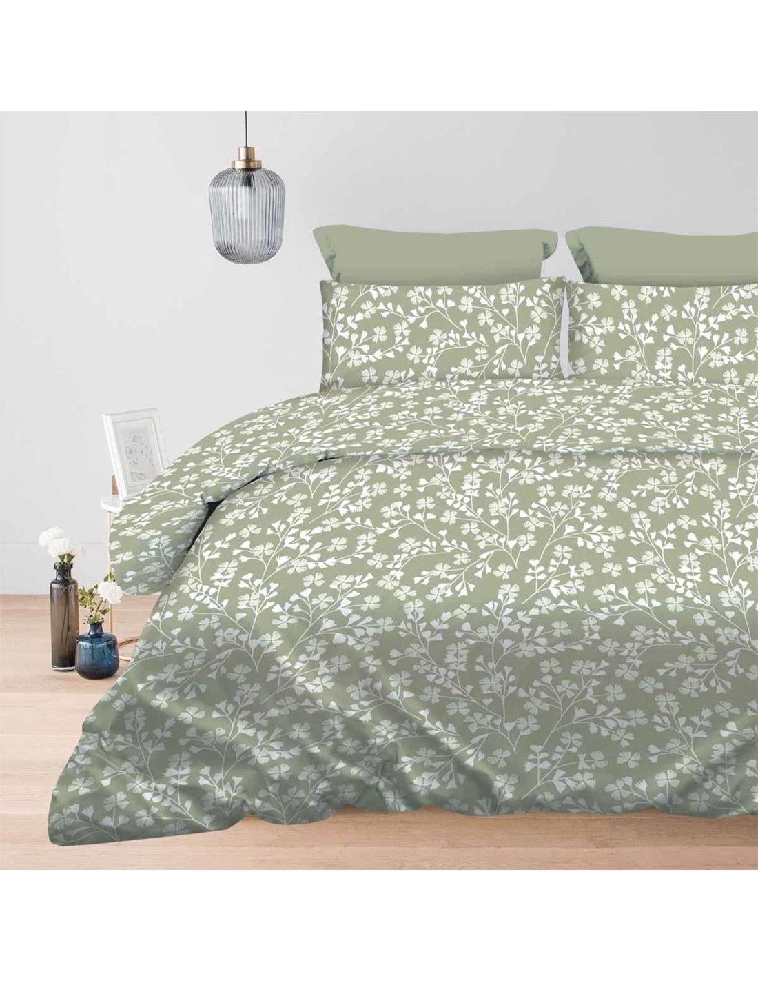 Σετ υπέρδιπλα σεντόνια Daisy olive από 100% βαμβάκι 245x260εκ.