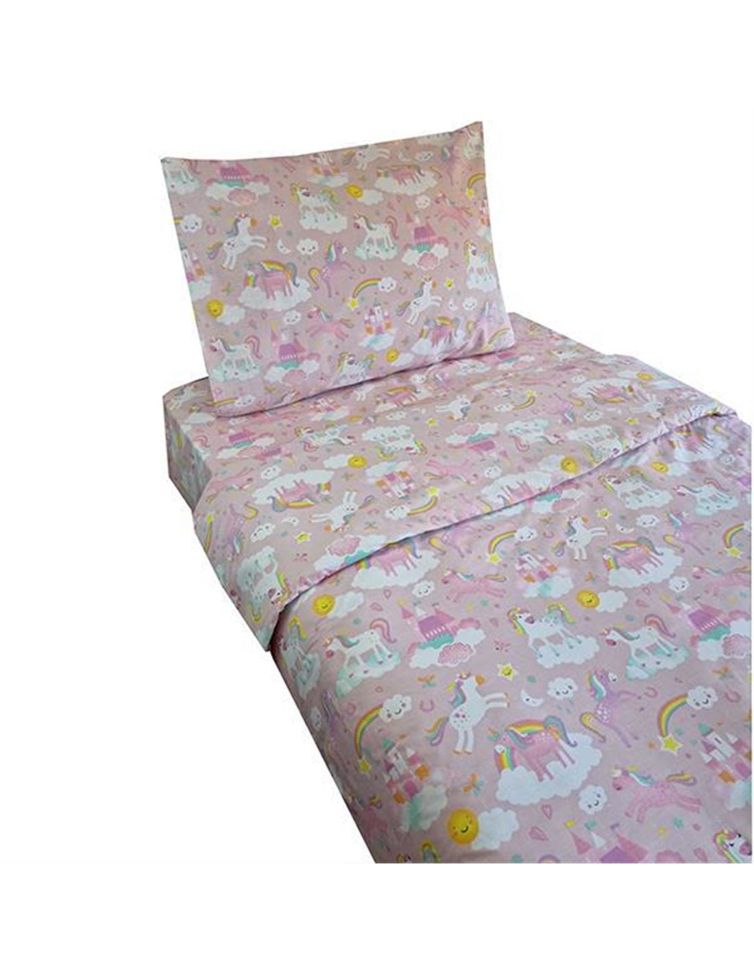 Σετ παιδικά σεντόνια μονά Castle Unicorn από 100% βαμβάκι 175x260εκ.