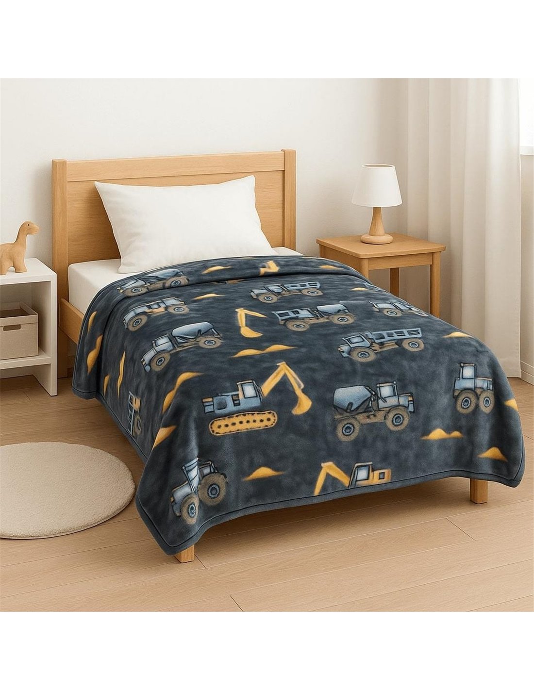 Η παιδική κουβέρτα βελουτέ της εταιρείας Astron Italy.Η ποιότητά της είναι εξαιρετική, από 100% polyester,ξεχωρίζει με την αρκετά απαλή της υφή, βάρους 575gsm που την καθιστά εξαιρετικά ζεστή. Το σχέδιο της κουβέρτας “trucks” παρουσιάζει φορτηγά και φαγάνες. Τα χρώματα και οι διασκεδαστικές εικόνες των Φορτηγών κάνουν αυτήν την κουβέρτα ελκυστική για τα παιδιά. Αυτή η κουβέρτα μπορεί να χρησιμοποιηθεί για να κρατήσει τα παιδιά ζεστά και άνετα κατά τη διάρκεια της νύχτας. Επίσης, μπορεί να χρησιμοποιηθεί ως προσθήκη στη διακόσμηση του παιδικού δωματίου. Η κουβέρτα μπορεί να πλυθεί στο πλυντήριο, καθιστώντας την εύκολη στη συντήρηση και τον καθαρισμό. Διαστάσεις: 150x220εκ.