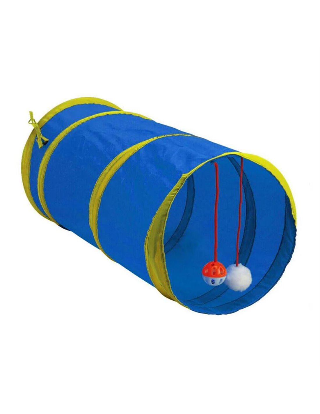 Τούνελ για γάτες. Με κρεμαστά παιχνίδια που θα κρατήσουν τη γάτα σας απασχολημένη για ώρες. Με εσωτερικό ελατήριο για να διατηρείται σταθερό. Το απόλυτο παιχνίδι – κρυψώνα που θα “ξυπνήσει” τα ένστικτα κάθε γάτας για τρέξιμο και κρυφτό. Διαστάσεις: Ø17.5x0.5εκ Χρώμα ∶ Μπλε