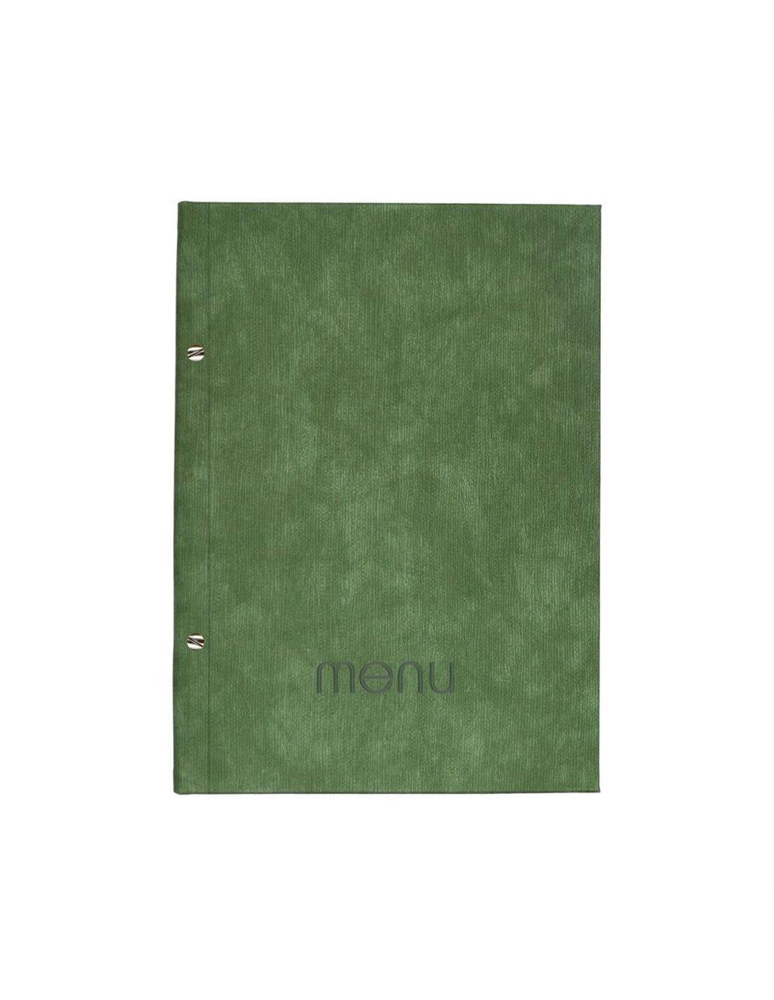 Μενού εστιατορίων από πυρογραφική δερματίνη. (με υφή ανάγλυφη). Εξαιρετική αντοχή στη χρήση. Mε 2 ζεύγη βίδες (αρσενικό-θηλυκό) και 10 διαφανείς ζελατίνες για 20 σελίδες. Μπορείτε να προσθέσετε ή να αφαρέσετε διαφάνειες. Διαστάσεις: 24x32εκ. Χρώμα: πράσινο. Δυνατότητα προσωποποίησης για διαφημιστικό, δείτε φωτογραφία.