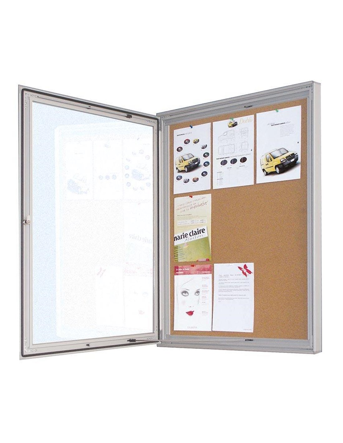 Πίνακας ανακοινώσεων φελλού. Plexy glass. Ανοίγει με κλειδί. Χωρητικότητας 6xΑ4. Εξωτερικές διαστάσεις: 58,5x107,5εκ.