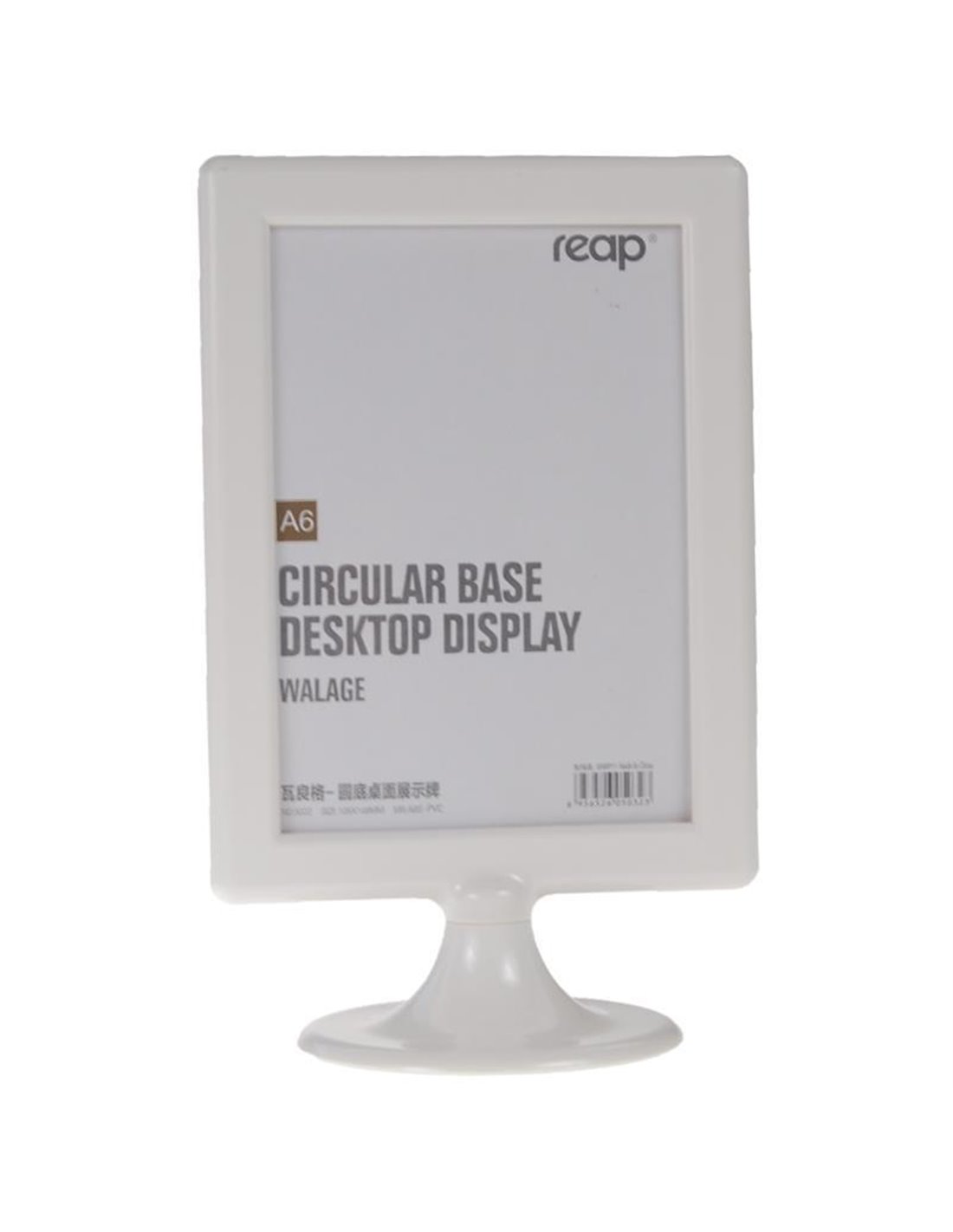 Σταντ ακρυλικό κάθετο με στρόγγυλη βάση και λευκό περίβλημα.