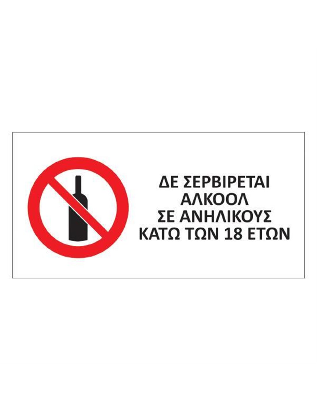 Αυτοκόλλητο από pvc. "Δε σερβίρεται αλκοόλ σε ανηλίκους κάτω των 18 ετών" Πολύ χρήσιμη επιγραφή. Διαστάσεις: 16x8εκ.
