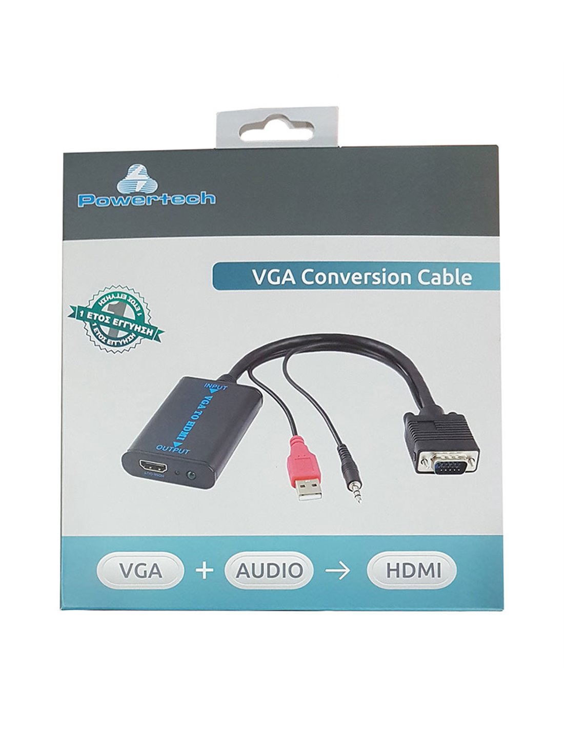POWERTECH αντάπτορας VGA/USB/3.5mm σε HDMI CAB-H070, 1080p, 0.2m, μαύρος