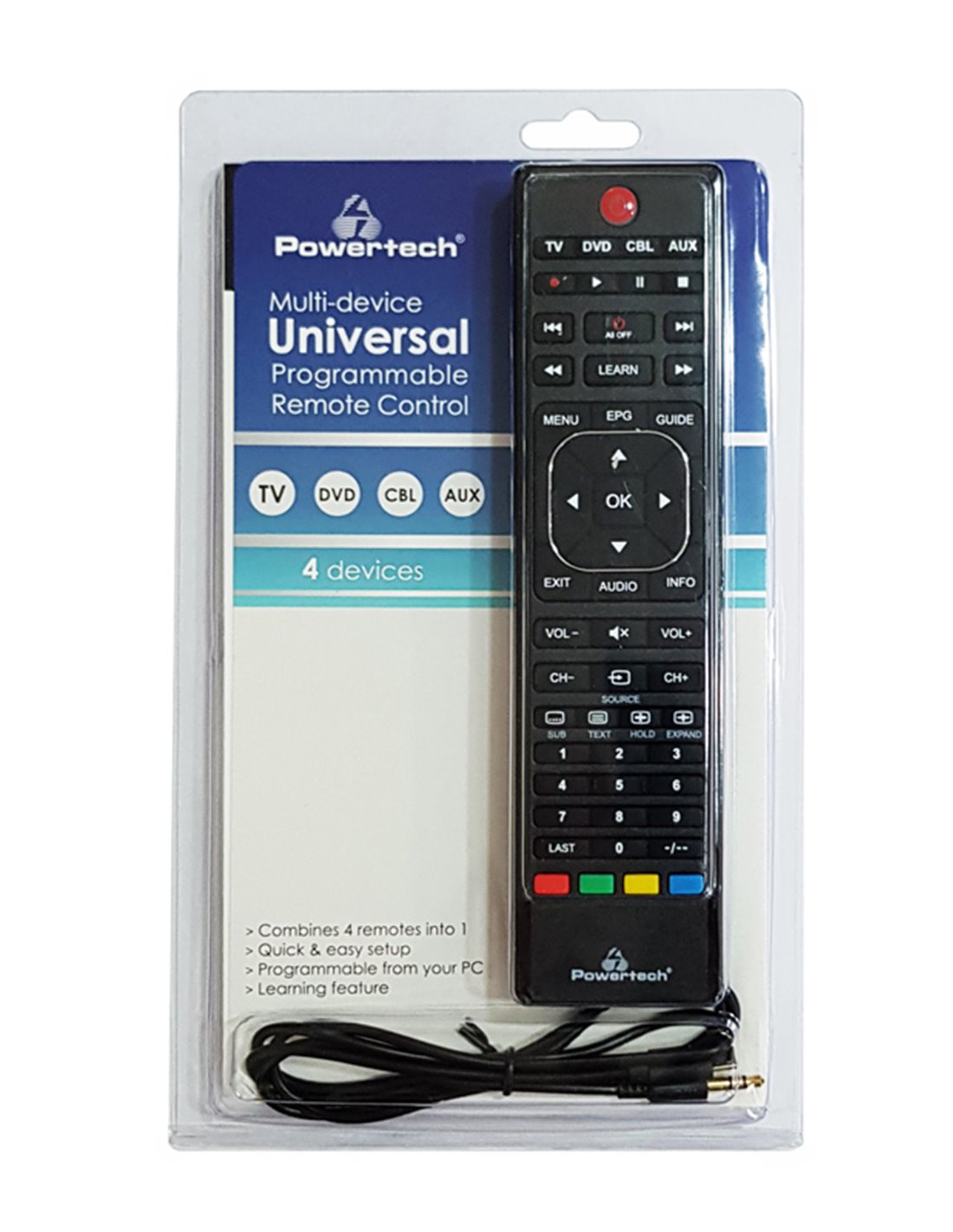 POWERTECH Χειριστήριο PT-744, προγραμματιζόμενο μέσω Η/Υ, TV/DVD/CBL/AUX