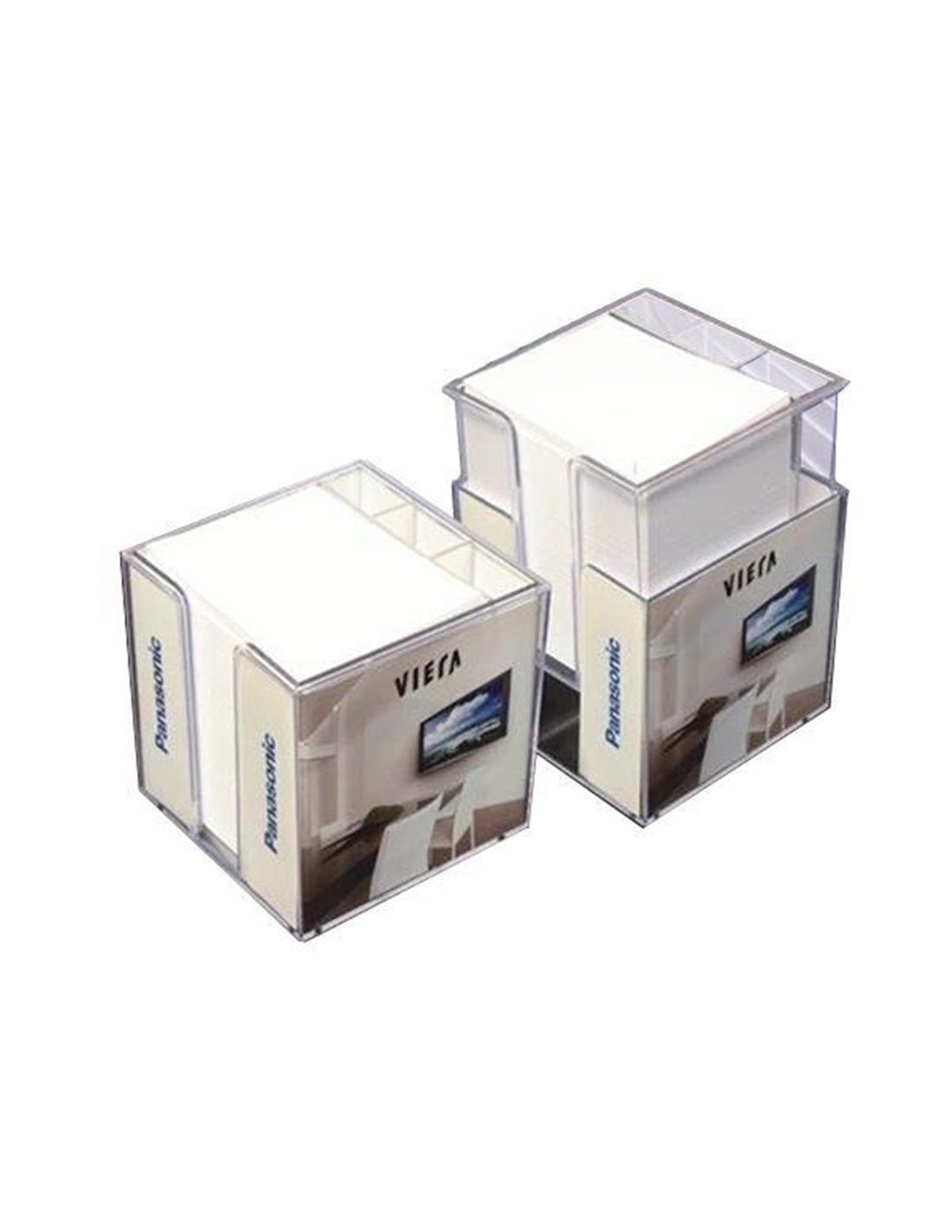 Κύβος σημειώσεων διπλός άδειος με μολυβοθήκη. Αν επιθυμείτε τοποθετείτε φωτογραφίες σας ανάμεσα στα διπλά τοιχώματα του κύβου. Συνδυάζεται με ανταλλακτικά φύλλα 01024 και 01038. Διαστάσεις: 9x7x9εκ.