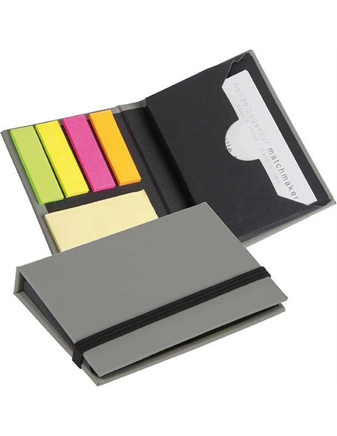 Κλείνει με λάστιχο και περιλαμβάνει χαρτάκια σημειώσεων και σελιδοδείκτες.